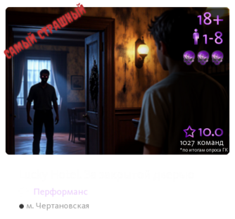 1. Сценарий: Уникальные перфомансы обычно имеют детально проработанный сюжет. Проверьте, предлагает ли компания интересную и захватывающую историю. Например, "Lucky Hotel. За закрытой дверью"- мистическая драма о любви родителя к ребенку, которая не отпускает до конца.